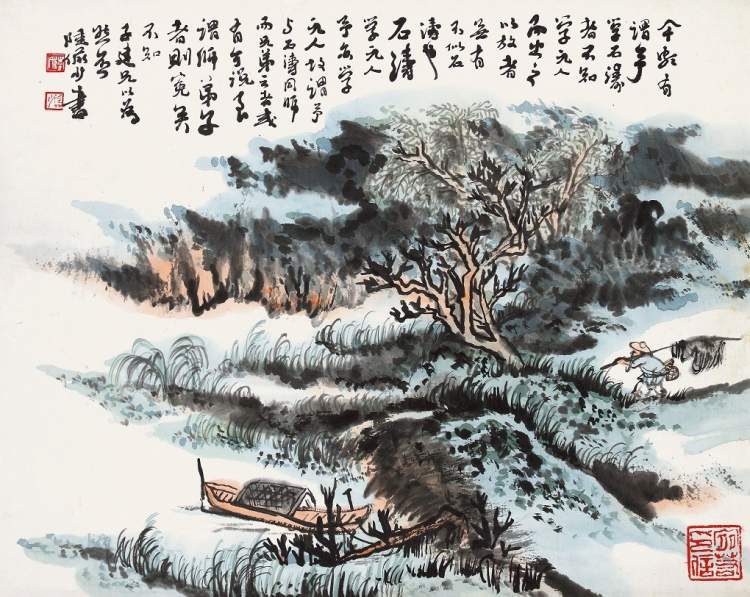 题识:毛主席的指示到达了田头,一九五五年十一月,陆俨少写。