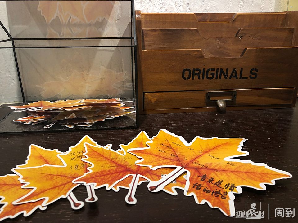 恰逢落叶季,武康路旅游咨询中心还推出了“梧桐叶”留言卡活动,邀请市民和游客写下关于武康路的美好记忆,将满载回忆的留言卡留在梧桐深处的老房子艺术中心。