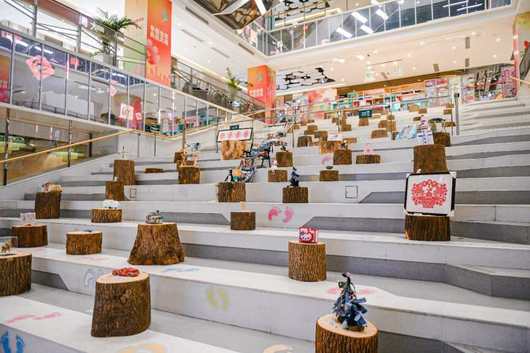 本次展览邀请了超级事件(A Big Event)发起人、音乐作词人、先锋艺术家阿大A Big,他以其别具一格的创作视角和理念,将上滨生活广场B1层打造成了一片因为人们的过度砍伐与践踏后的“森林”。“大家可以在现场看到有100个从林场收来被砍伐后的废弃木桩,地面上色彩缤纷的脚印则寓意了人类正在通过砍伐森林来为自己的生活获取便利。我希望用这个行为艺术展来呼吁大家从自己做起,保护森林,保护绿水青山。”阿大A Big表示。