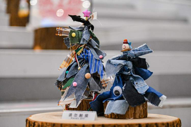 最“嘉”生活X Listen|听森林在唱歌生态艺术作品展开幕当天,近百位嘉兴路街道居民代表、上滨亲子家庭会员到场参与展览启幕仪式,共同感受低碳社区无限活力,“碳”寻美好生活!大家更是在“折子戏”主理人BOBO潘的指导下,现场用废旧衣物边角料为即将到来的元旦和新年制作迎新树,街道居民、上滨亲子家庭会员纷纷表示,这是一次与众不同的尝试,要把制作完的迎新树放置在现场的树桩上。“感觉自己也成为了一名艺术家,自己的展品可以在未来三个月供大家参观,这种感受很新奇”。