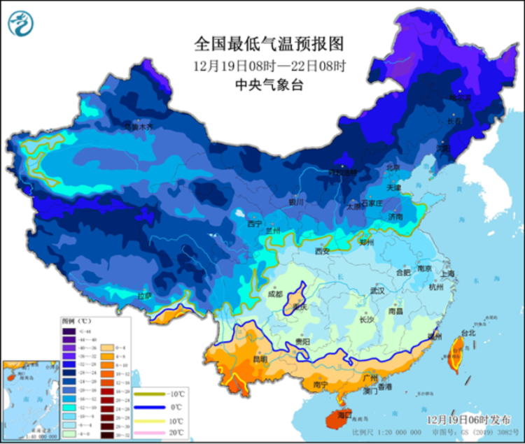 上一轮寒潮影响刚刚结束,昨天中东部大部气温短暂回升,但与此同时新一轮冷空气又接踵而至。未来三天将是这股冷空气影响的主要时段,中东部大部气温将在偏低的基础上继续下探。中央气象台12月19日06时继续发布低温黄色预警。