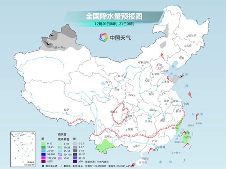 中央气象台预计,今天吉林东部、辽宁中东部、新疆北疆北部、青海北部、甘肃河西、山东半岛、安徽东南部、江苏南部、浙江西北部等地部分地区有小雪或雨夹雪,其中,山东半岛北部部分地区有中到大雪(5~6毫米)。湖南南部、江西中南部、浙江中南部、福建大部、云南东部、广西南部和东部、广东西部和北部、海南岛大部、台湾岛等地部分地区有小雨。
