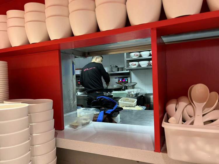 中午11点半,记者来到这家餐厅,发现还没有什么客人,老板坐在座位上,店员们正在为午高峰做着准备。“别看现在还没什么人,到12点就要开始排队了!”老板笑着说。