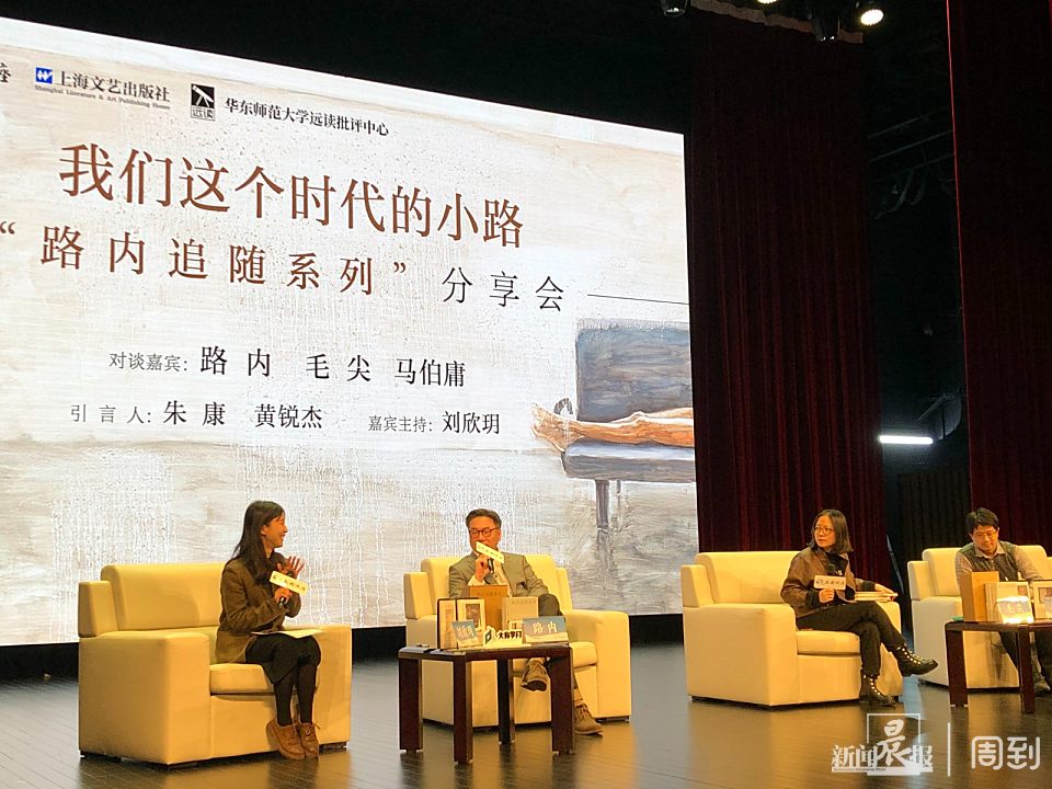 12月17日虽然是上海入冬以来最冷的一天,当天最低温度达到零下4℃,不过现场气氛火热,几百位读者赶来上海图书馆东馆参加分享会。三位嘉宾分别为路小路(路内)、毛小毛(毛尖)与马小马(马伯庸),在台上与读者分享他们对“追随”系列的创作感悟与读后看法,谈论各自对小说人物路小路的认识。