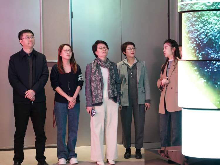 在上海蓝硕文化科技(上海)有限公司,张华一行实地体验了动作捕捉、全景投影等数字化技术,并探讨了数字化赋能党建活动和妇女工作开展的应用场景。张华表示,上海蓝硕文化科技(上海)有限公司作为2023年挂牌的“嘉定区女性创业就业实践基地”,要结合企业特点,提供更多助力女性发展的配套服务,促进妇女就业创业,持续推动企业和经济社会高质量发展。