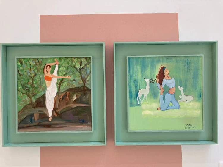 展览中的“瑜伽美人”系列,描绘了杨心远对于瑜伽的修习感受。她说,画面中的不少瑜伽动作其实自己都做不到。我从2016年开始学习瑜伽,同时开始创作“瑜伽美人”系列作品。瑜伽的世界神秘而精彩,被汗水冲刷过的肌肤和心灵,都被净化了。瑜伽真正的宝藏是内在的喜悦,但描绘这些外在的美丽,也足以给人带来平静和温柔。
