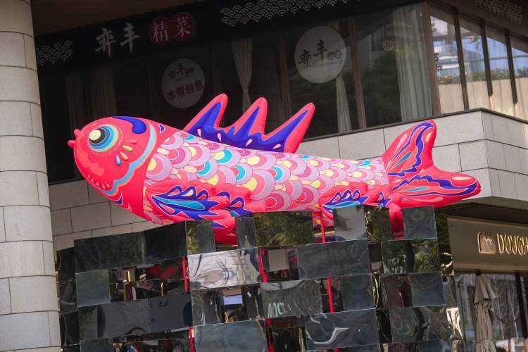 瑞虹天地以18头手工精致瑞狮、100余盏非遗鱼灯为核心及丰富的新春元素,结合商场场地形态特色,在太阳宫5楼Foodie Social区域、月亮湾主入口、月陆花园、月亮广场等多处进行装饰,打造极具春节氛围的沉浸式展陈空间,供消费者至现场祈福、打卡。
