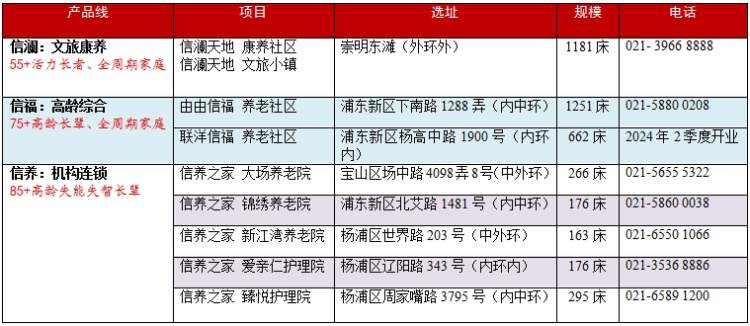 “都市型、一站式、医康养”—— 4000张优质床位集中供应,“信字系列”三大产品线,8个项目布局上海。