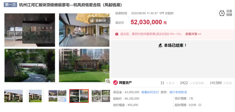 直到看到阿里资产有豪宅低价起拍,他果断进行了选择。“别的平台都是高报价,然后再被砍价,且客群有限。而阿里资产是低价起拍,能够吸引全国客流,市场充分、自由竞价,让资产得到应有的价值。”