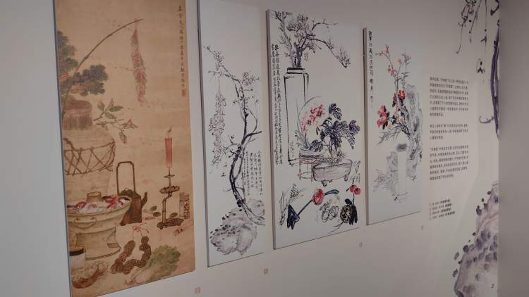 朵云轩区域展出了不同朝代的岁朝清供图,除了是精美的摆设,还通过画中之物的寓意体现了对春节美好的祝福。