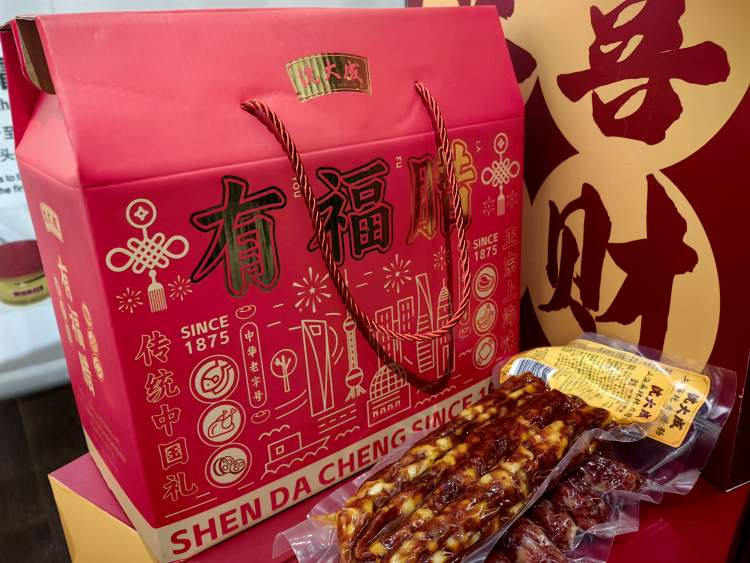 在沪上新晋打卡地“华山263老字号品牌馆”,已经是第二次前来打卡的市民毛女士看到展馆里老凤祥的25KG足金龙,英雄100龙年收藏款金笔,杏花楼、新雅的年货礼包……惊喜地感叹,没想到最浓的年味在这里
