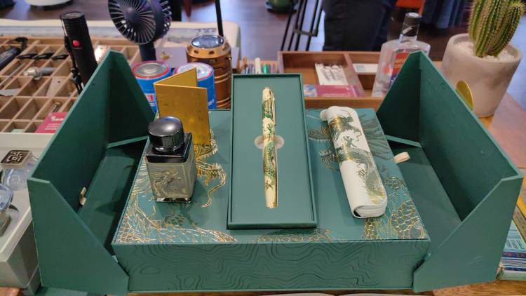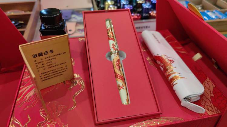 英雄100钢笔曾是几代人的“指尖回忆”,过年过节用它给远方的亲人写上一封信表达思念和新年祝福。龙年,英雄钢笔还推出了龙年限定的钢笔礼盒,其中就包括一支似乎有神龙盘旋的经典英雄金笔。