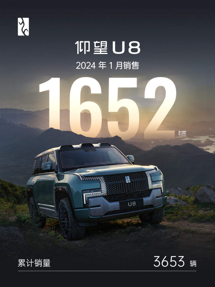 近日,仰望汽车公布2024年1月销量。仰望U8在开年第一个月,销售即达1652辆,上市交付仅两月余已累计3653辆。继首个完整交付月以1593辆销量一举跻身全球百万级豪车前列之后,仰望迎来2024开年开门红, 蝉联百万级新能源SUV销量第一,呈现出良好势头。