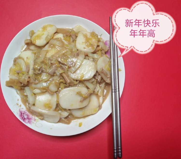 吃炒年糕对于现在的人来说是再简单不过的美食,可是在当年物资匮乏的年代,只有过年时才能享受的美食……年三十晚上,家中年夜饭最后一道,我老爸亲手上手,黄芽菜冬笋肉丝炒年糕,讨个口彩寓意“年年高”,如今这已是家常便饭。