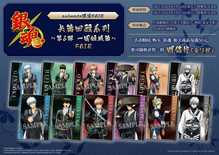 在百联ZX创趣场5楼,银魂 x animate限定FAIR活动正在举办中,经历了漫长的连载,银魂终于迎来了完结,一起来回顾当年的感动,活动期间购买相关商品每满50元即可随机获得特典明信片1枚,特典发完为止。