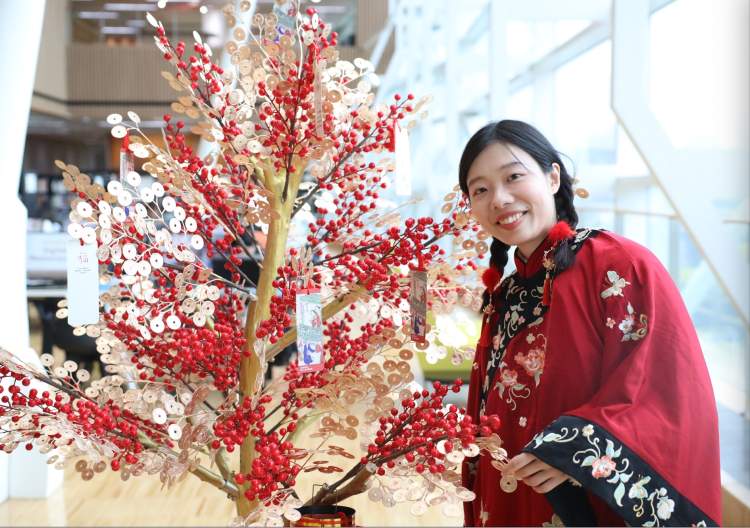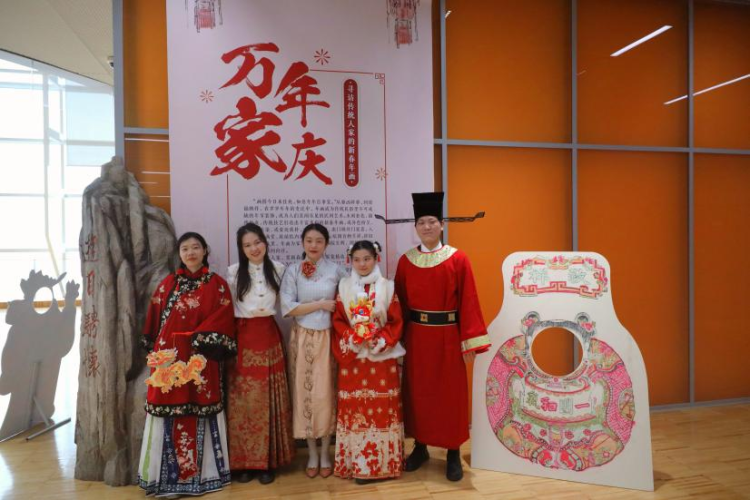 站在“万年家庆——寻访传统人家的新春年画”展览入口,五位装扮成年画人物形象的年轻人摆起了不同造型,而他们正是王晨敏带领的负责美术文献馆日常运营的团队成员。