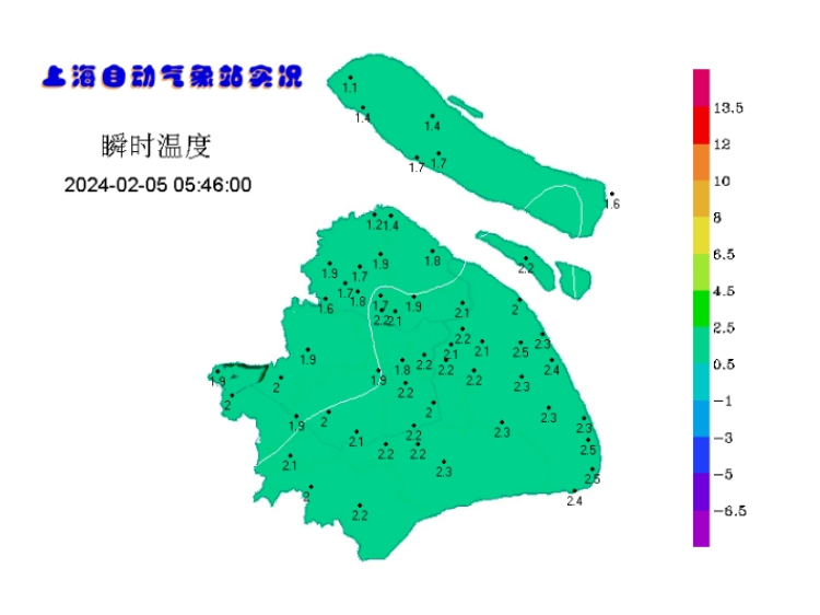 据上海气象台消息,今天申城阴冷开场,早晨各区气温在1-2℃之间,预计今天最高气温仅5℃。上午青浦、松江、浦东、崇明等区观测到降雪,持续时间较短,降雪微弱。下午起,本市转为阴到多云。