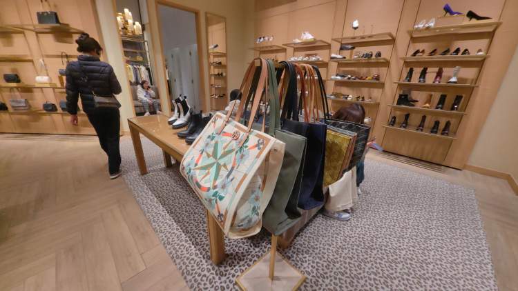 工作日的下午,记者在佛罗伦萨小镇某品牌店内看到,女装和男装各占据一层楼,一楼男装男鞋二楼女装女鞋,两层楼的人气都很旺,正感慨人多,一旁的工作人员却说道,“这还算人少的,多的时候,上下楼都走不动道”。