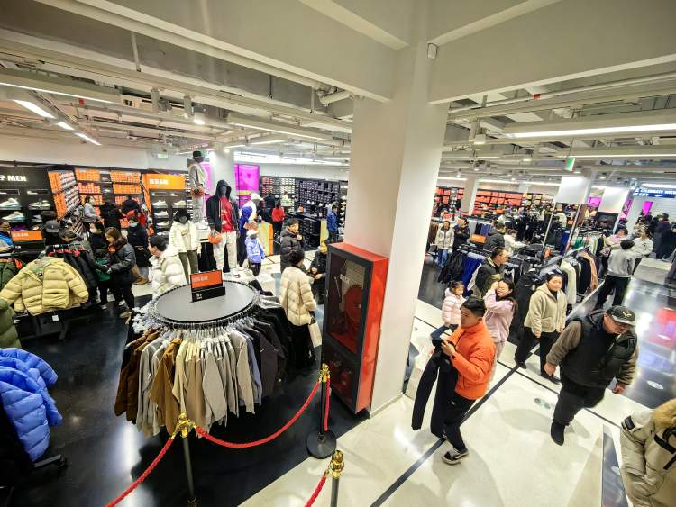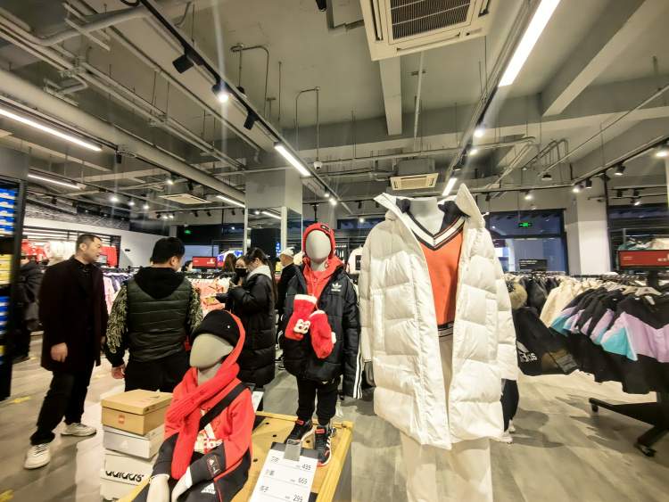 商店里则显得有点闹闹哄哄,放眼望去都是在货架旁试衣服、试鞋,在收银台买单的人。