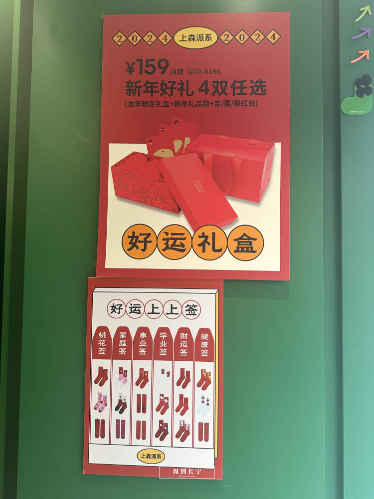 店铺还推出新年礼盒,买上一份带有好运寓意的组合袜子送家人朋友,也是一份挺独特的礼物吧?