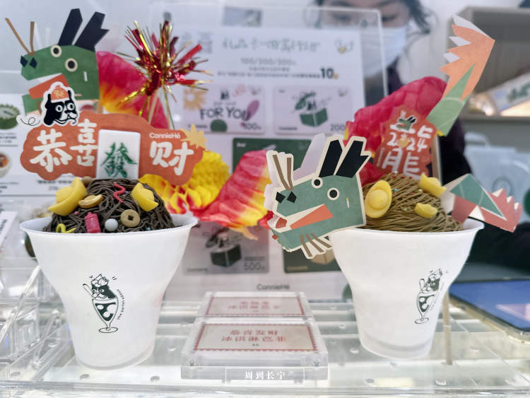 这个春节,店里推出多款愚园路限定甜品。造型靓丽、寓意动人的冰淇淋芭菲,让冬天吃冰淇淋这件事变得浪漫且日常起来。金元宝凤梨酥、七龙珠爆米花,妥妥把过年的气氛拉满了。