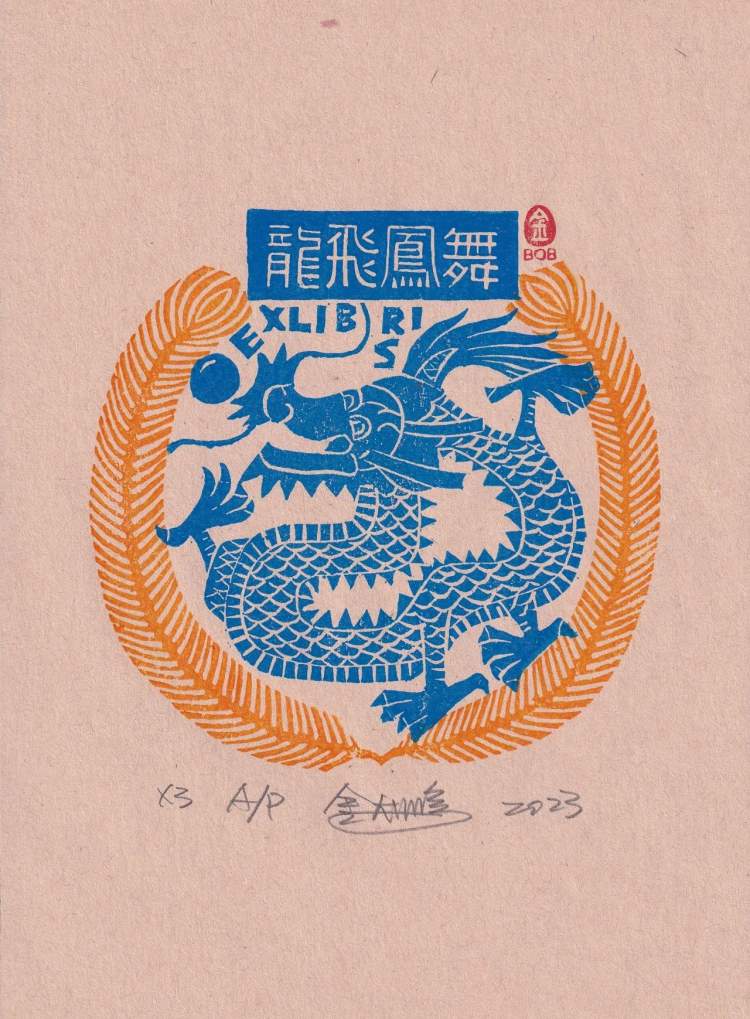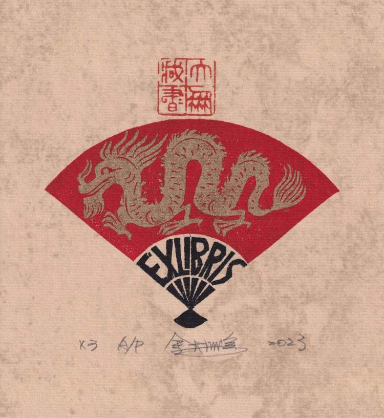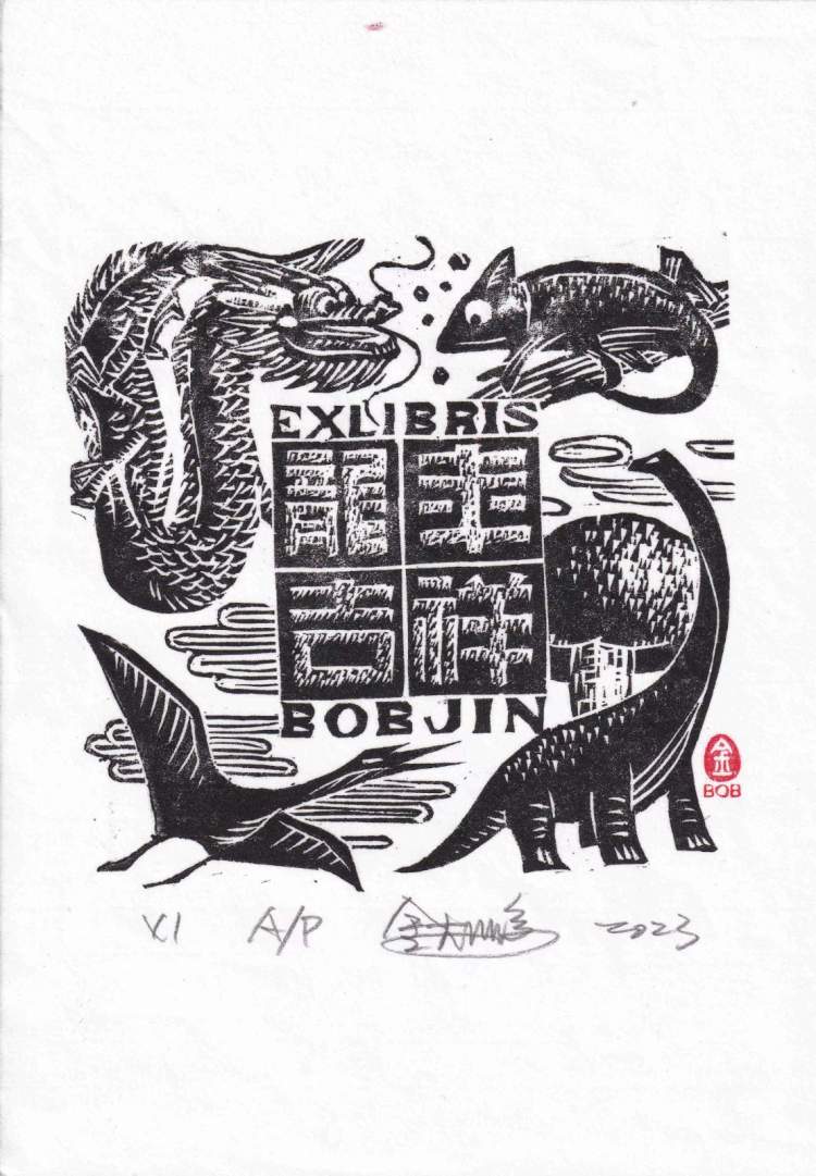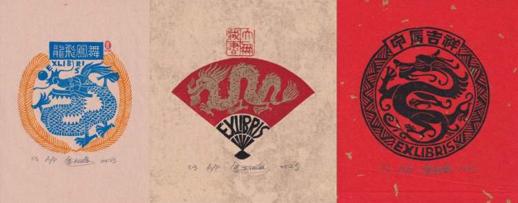 我们做藏书票的人有个习惯,就是每年春节之前都会设计新的生肖票,今年是龙年,我很早就开始准备龙的藏书票了。我们都知道,龙是中国人的图腾,是一种精神象征,我们都是龙的传人。我做“龙票”就要去研究龙,还要把龙的形象设计得生动有趣。这次共展陈了六张龙的藏书票,数量要比往年多,这也是我心中对龙的敬仰。