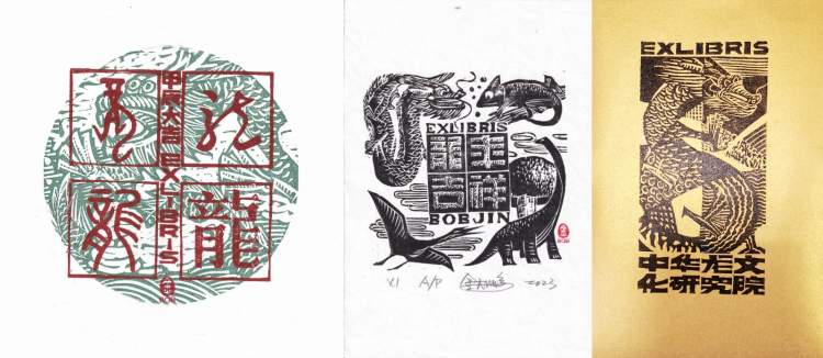 金大鹏设计的龙年藏书票(6张)