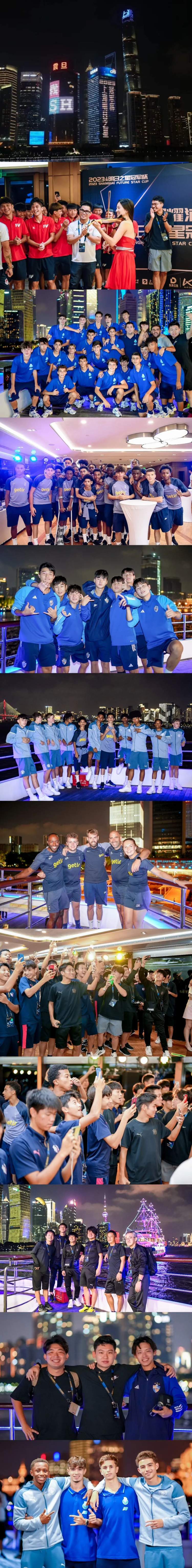 随着“申城之光”号游轮缓缓驶离码头,黄浦江的美丽景色瞬间包围了球员们。上海中心大厦的耸立、外滩的古典建筑、陆家嘴的摩天大楼,位列浦江两岸,花旗银行城市之窗为上海明日之星亮起了巨幅灯光画面,一切都如画一般绚烂夺目。球员们纷纷拿起手机,记录下这令人难忘的瞬间。