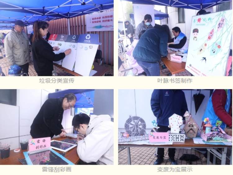 秋月枫舍新时代文明实践站和中北一小共同带来的“变废为宝”手工艺品,为居民提供了资源利用新思路。普陀城投惠民志愿服务队给居民带来了绿植养护咨询服务。