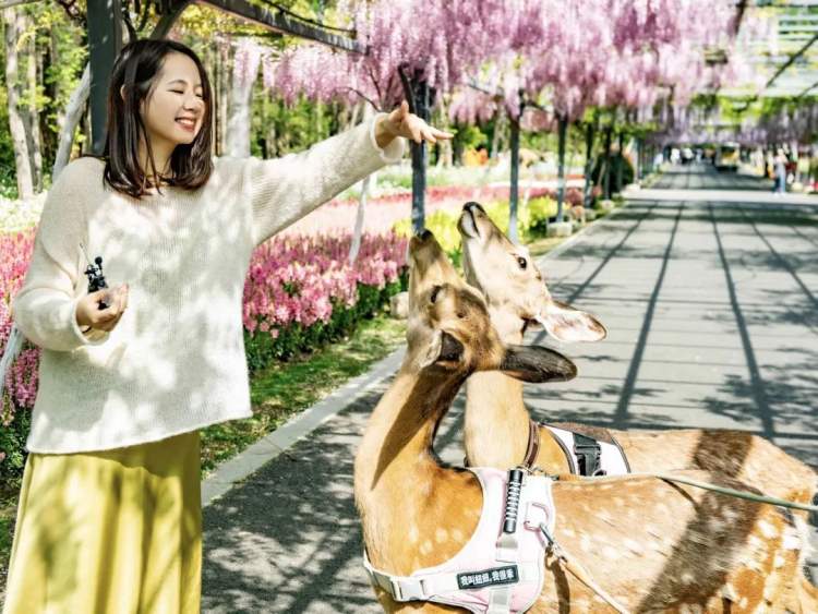 3月的东平国家森林公园,花朝节正在公园里举办,樱花、郁金香、二月兰等各类春花盛开,各种园艺景观点缀花海间,还能偶遇散放的梅花鹿。