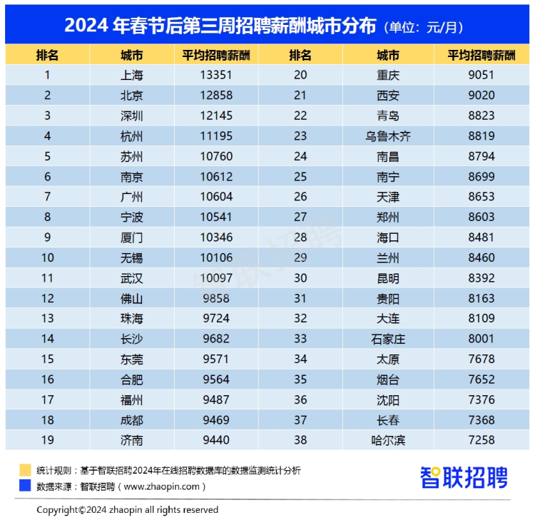 春招市场已渐入旺季,热度持续递增,招聘投递呈双向发力。服务业、IT互联网、房地产、高端制造等各行业密集“抢人”,生产质量管理、运动健身等岗位快速释放招聘需求。与此同时,人才到IT互联网行业、技术类岗位就业意愿持续高涨,长三角、珠三角吸引投递,人工智能工程师“钱图”大好。可以预见,随着国内经济的全面复苏,招聘市场持续向好发展,并且有望在未来继续保持这一良好势头。
