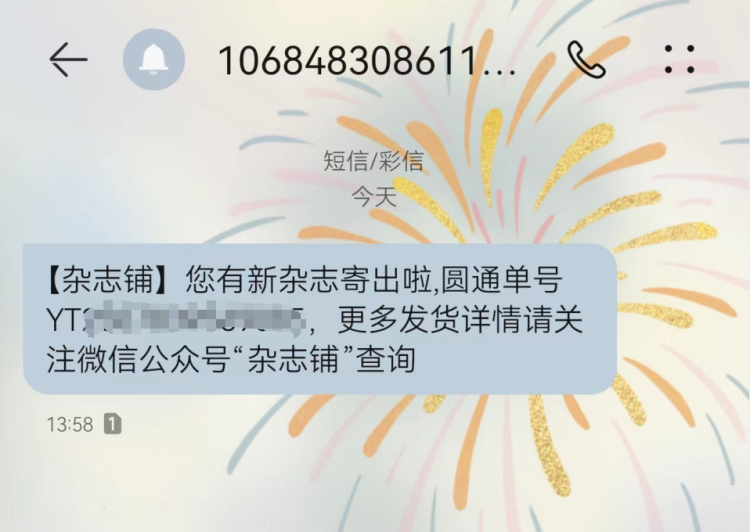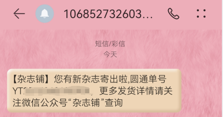 3月1日,李小姐收到了“杂志铺”的短信通知,短信通知写道:“您有新杂志寄出啦!”其实,这份通知并不是告知订户《收获》杂志的寄出,而是一份确认单和订阅礼。3月2日,包括李小姐在内的许多读者收到了确认单和订阅礼。