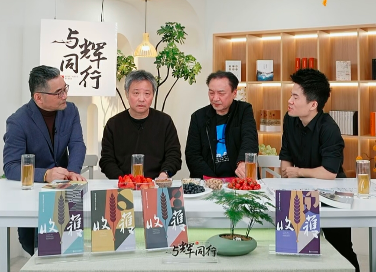 《收获》杂志主编程永新(右2)在直播节目当中