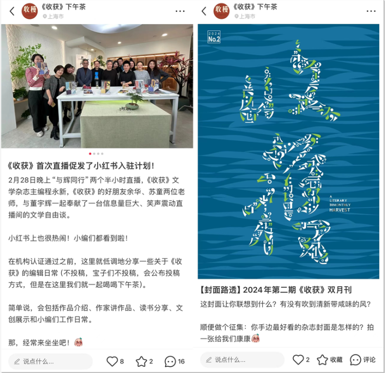 《收获》杂志入驻小红书之后发布的信息
