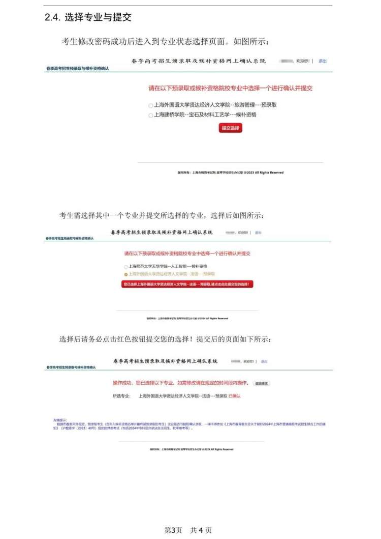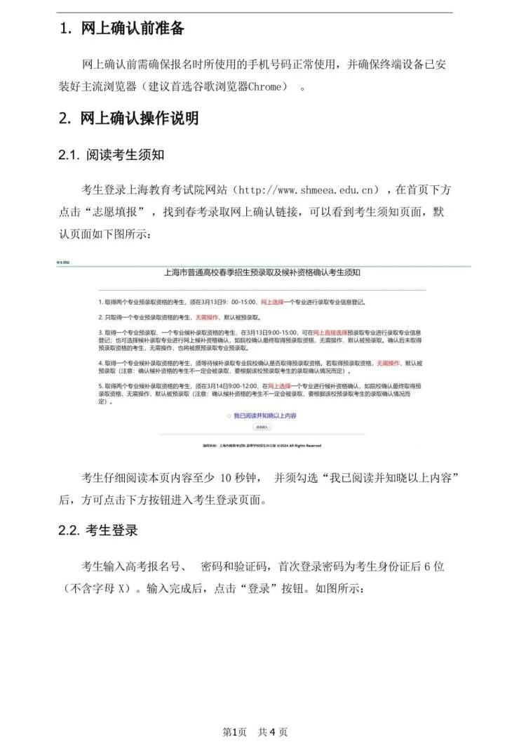 2. 打开网上确认系统后,根据系统内“上海市普通高校春季高考招生预录取与候补资格网上确认系统操作手册”具体指导步骤,进行网上确认。