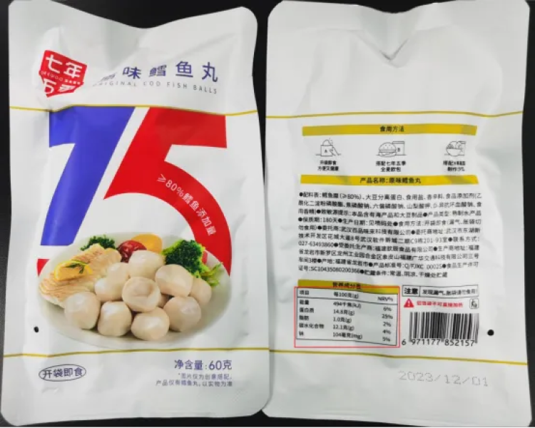 在“七年五季旗舰店”直播间,市消保委对购买的一款名为七年五季原味鳕鱼丸的调查发现,主播宣称:“低脂肪高蛋白,无淀粉添加,单包71大卡”,而实际检测结果显示,能量、脂肪、钠实测值不满足GB 28050-2011中标示值的允许误差范围,主播宣称的“低脂肪”也不满足声称条件。市消保委称,“无淀粉添加”也涉嫌误导消费者。