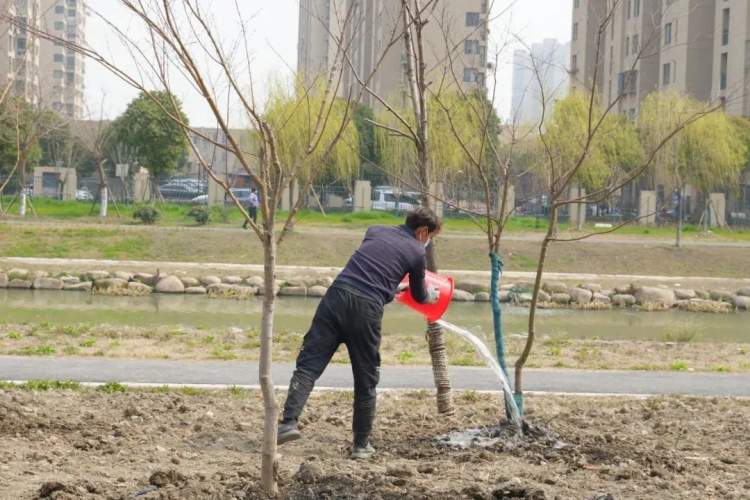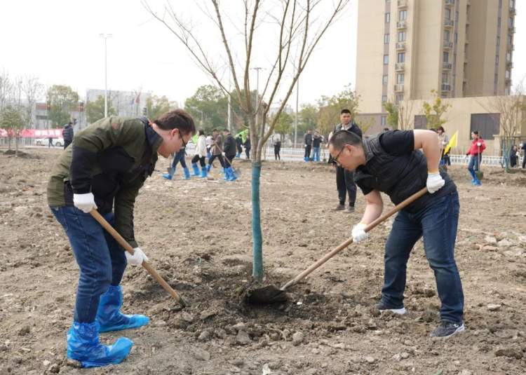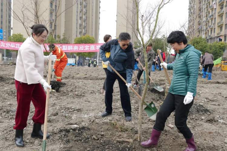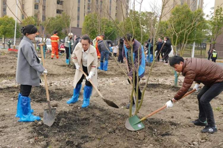 大家分组行动,戴上手套,拿起铁锹,挥锹铲土、扶植树苗、浇水培土,分工合作,现场一派繁忙而有序的景象。经过一番辛勤努力,榉树、金桂、鸡爪槭、紫薇等共计165株树苗向阳而立,为初春的南翔大地增添了勃勃生机。这些新植的树苗将在未来的日子里,与南翔镇共同成长,为市民们带来更加美好的生活环境。