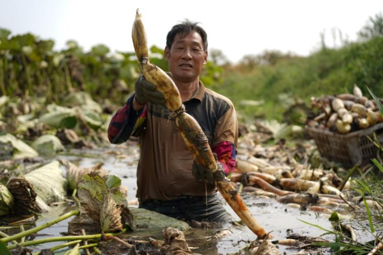 在挖藕之前,赵道凯对家乡省内的莲藕知之甚少。多年前他还在广州打工,看到超市里的藕又粗又圆,工友告诉他超市里卖的莲藕都是湖北产的。他很疑惑,吃起来很脆,并不像小时候家里挖的野藕香糯。