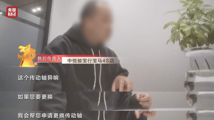 中悦骏宝行宝马4S店 售后负责人称,如果需要更换,会帮忙申请更换传动轴。