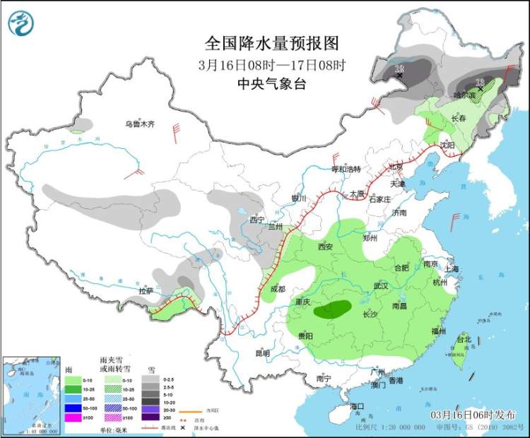 除了沙尘的影响,今天东北地区的雨雪影响范围也比较大。内蒙古东部、黑龙江、吉林等地部分地区有小到中雪或雨夹雪,其中,内蒙古东部、黑龙江中东部等地部分地区有大到暴雪。