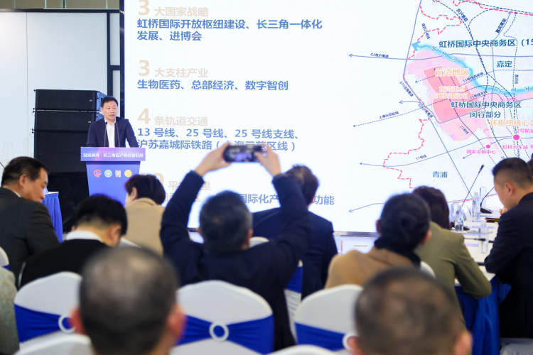 “虹桥前翼链枢纽,碧水一湾引苏河,作为苏州河进入上海主城区的第一个集中建设区域,前湾由此得名,30平方公里的虹桥前湾片区覆盖了华漕全域,我们可以说,从虹桥前湾规划就能看到未来华漕盛景。”华漕镇党委副书记、镇长李斌从前湾的由来开始,对虹桥前湾的总体规划及营商环境做现场推介。
