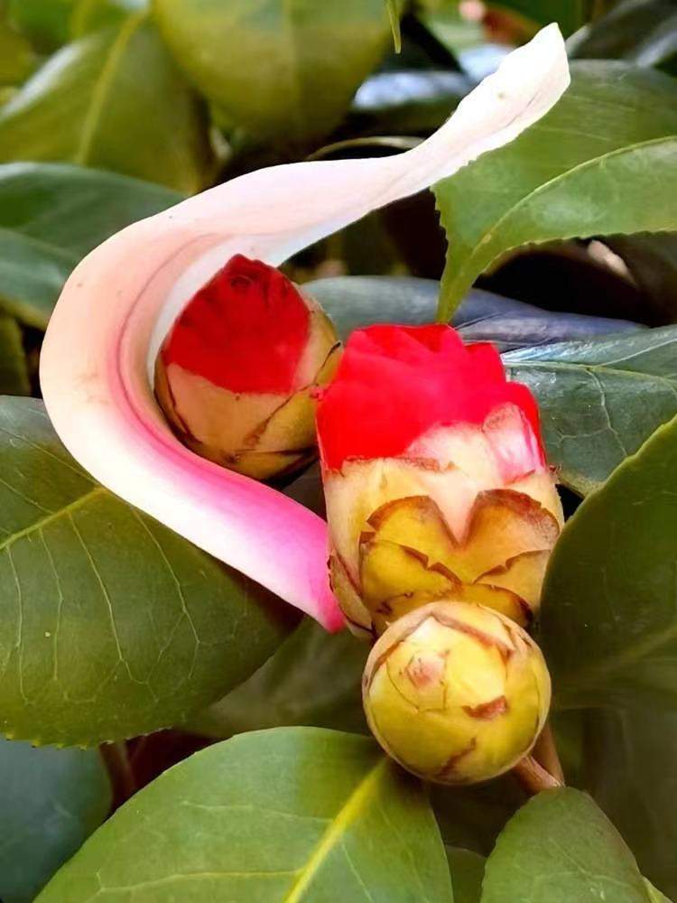 难得下午雨息,于是外出去寻觅春的信息,惊喜地发现第一波白玉兰已悄然绽放,赶紧拿起手机选角度,对镜头,拍几张。再往前走,山茶花含露怒放,红的娇艳欲滴,白的圣洁无暇,在绿得逼人眼的绿叶衬托下,愈发显得春意勃发。结香的“小蜂窝”已高高擎起,淡淡的蜜黄,独特的臭香,细看“小蜂窝”其实是几十朵小黄花簇拥在一起,集聚在枝头,倒也讨人喜欢。
