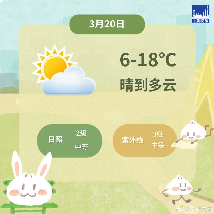 申城天气:今天晴暖继续,微风相伴,昼夜温差达12℃ 周到君 2024-3-20 来源:周到上海 今天是二十四节气中的春分,上海晴到多云,西到西南风转偏北风,夜里起东南风,风力都是3-4级,全天气温在6-18℃之间。 明天云系略有增多,最高气温或在17℃左右。周五到下周一多阴雨天气,但气温并不低,维持在15-22℃,暖湿体感上线。 (内容综合自上海发布、上海市天气) 来源:周到上海 作者:周到君 赞一个 (0)