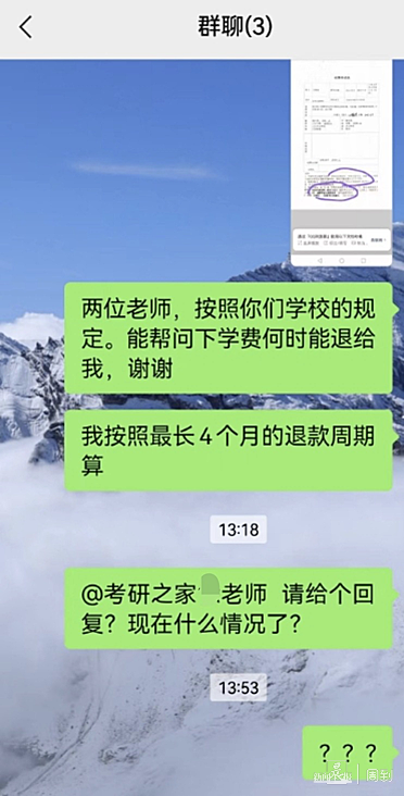 无奈之下,王先生只好于2023年3月向“考研之家”提出退款,可他没想到的是,这一等就是一年,至今仍未拿到4万元退款。