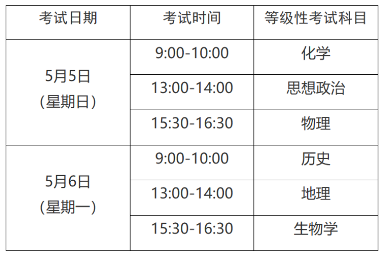 其中,物理、化学、生物学技能操作测试,以及信息技术科目的具体考试时间以准考证为准