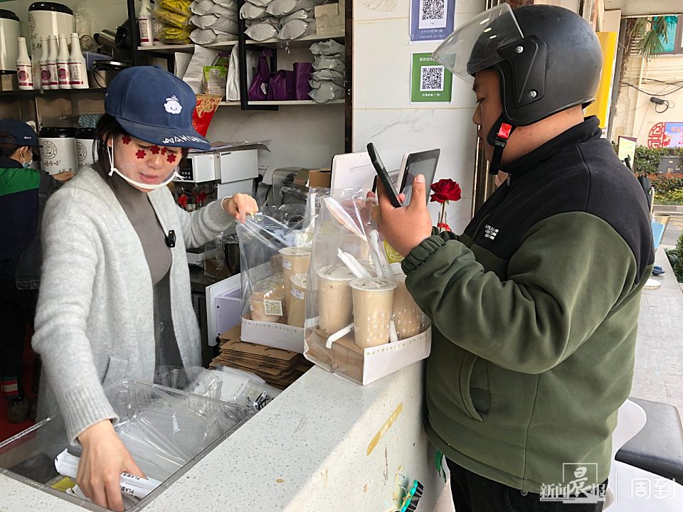 中午时分,奶茶店的接单量上来了,生意开始忙碌了起来,宗晓燕匆匆结束了采访去店里帮忙。有骑手陆续来店取奶茶,有的骑手一次就拿了十几杯同款奶茶。一位正在等候奶茶的白领告诉记者,看到小红书上有人介绍这家店,所以就来了。