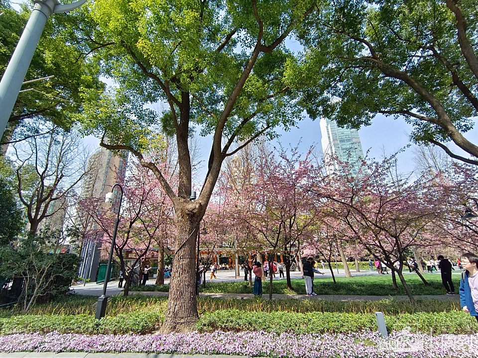 市民拿着娃哈哈奶茶在静安雕塑公园打卡