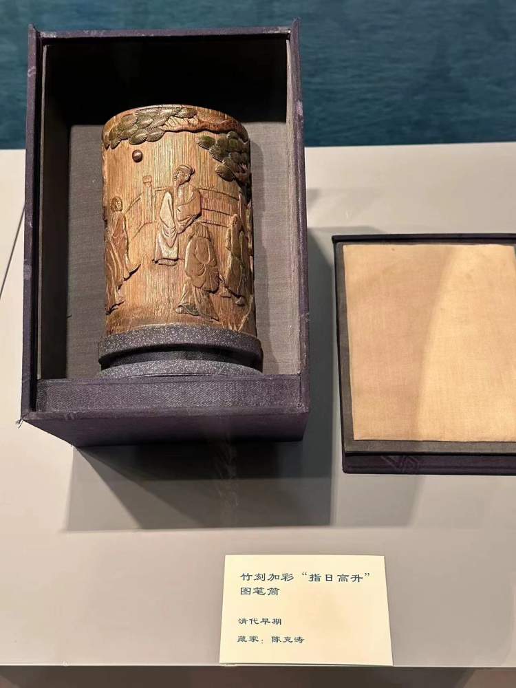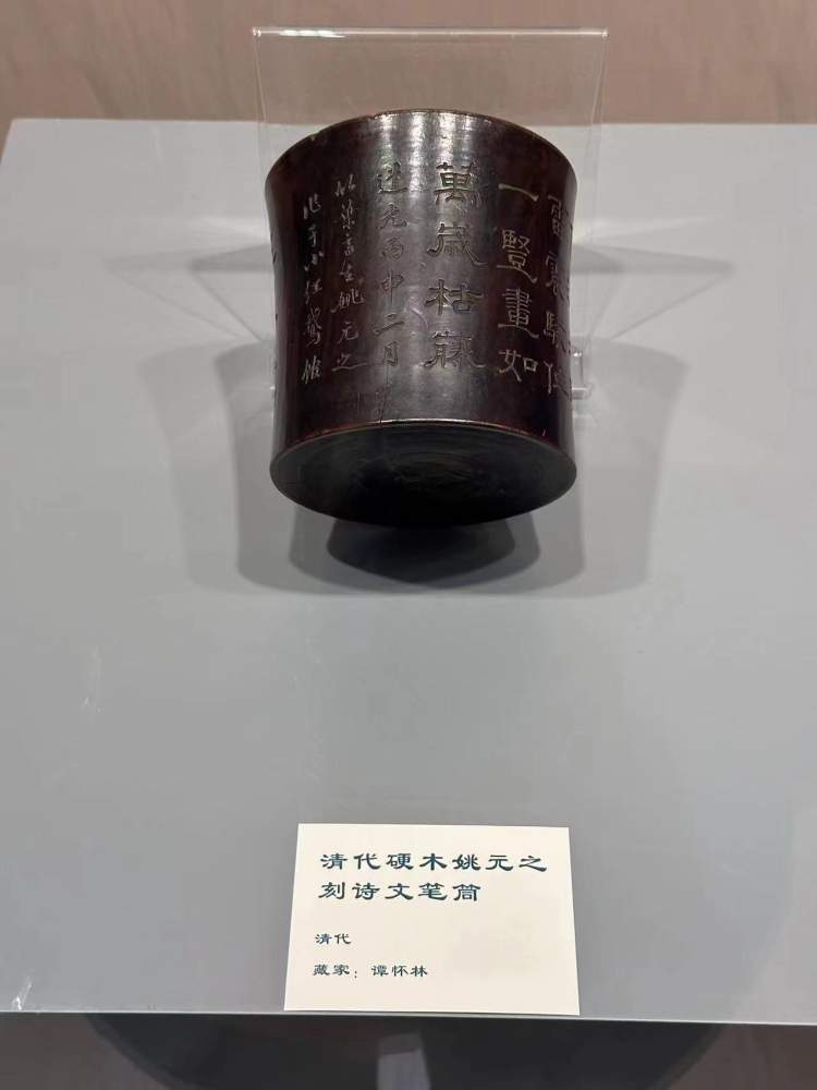 展览中还展示了作为文人“怀袖雅物”的扇,“案前独秀”的笔筒,以及花瓶、奇石、盆景等书房布置。
