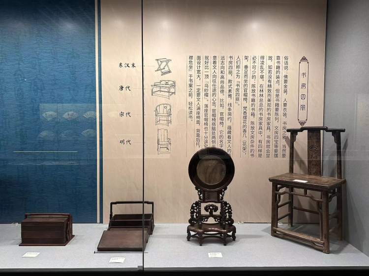 展览引领观众了解江南书房的日常用品,包括“文房四宝”笔、墨、纸、砚以及“文房四艺”琴、棋、书、画。