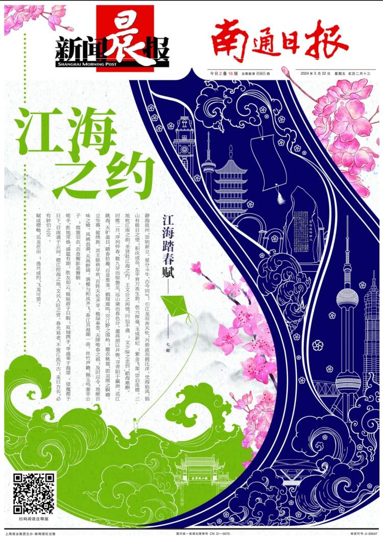 “写这篇《江海踏春赋》就是想到我们在充满了人文气息、风景秀丽的地方相会,一起踏春寻春,以后可能还会有更多一起做的事情,有更广阔的前景,就像长江奔入大海一样,滔滔不绝,生生不息。”在3月22日的新闻晨报头版,打破先例地刊载了一篇骈文体裁的文章,其作者七郎分享了他的初衷。